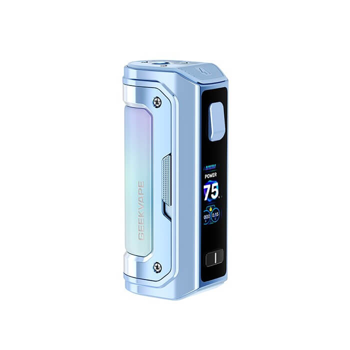 La Box Aegis Mini 5 dispose d'un écran couleur de 0,96 pouce et propose deux modes de réglage que sont le mode Smart (réglage automatique) et le mode classique de wattage variable (réglage manuel). Sur le côté de la batterie, Geekvape a apposé son traditionnel bouton de verrouillage A-Lock qui coulisse de haut en bas pour protéger le déclenchement et la modification des paramètres pendant le transport de la box.