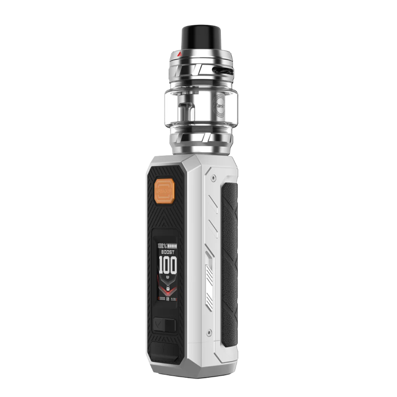 Vaporesso présente le Kit Armour Ultra, une cigarette électronique équipée d'une grosse batterie intégrée de 5500 mAh, pour une durée d'utilisation prolongée, mais avec un poids de seulement 173g pour la batterie ! La box Armour Ultra est robuste et certifiée IP68, IP69K et MIL-STD-810H (grade militaire d'un test de chute), capable de résister à l'eau, aux chocs, à la poussière et aux variations de température.